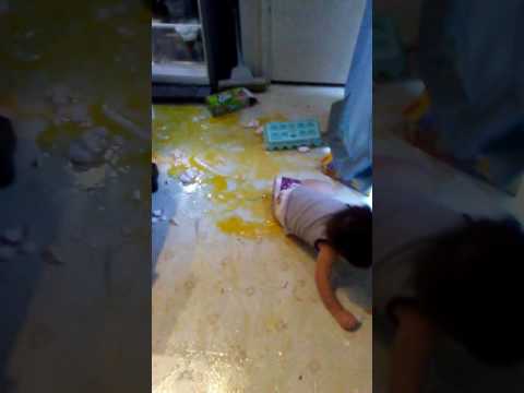 No one should leave me alone in the kitchen because everything in the fridge will be gone, but why in the world would you leave a toddler in the kitchen alone? For two minutes. With a fridge filled with eggs. You’re just asking for trouble, and that’s exactly what occurred in the video below.