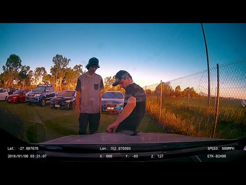 The incident below was filmed by a car’s dashcam at the Willowbank Raceway Car Park in Australia, and shows two men removing car parts from a car, trying their best not to be seen. Well, everyone saw it, including the owner. Here’s how the owner described the incident on YouTube.