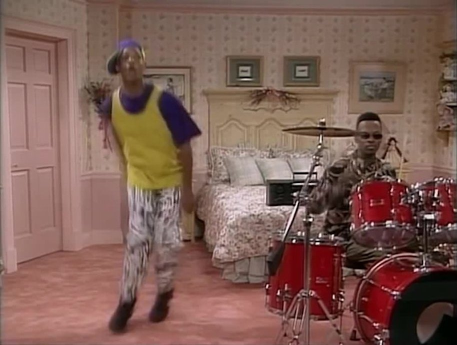 Will Smith arrives at the Banks’ house and immediately causes chaos. But all that is put aside as our attention is reeled in by Smith’s “tuxedo,” with a bright green, pushed-up baseball hat included, as well as some fly Air Jordans.