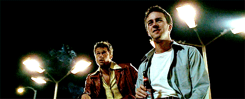 Based on a 2006 award-winning novel by then-unknown writer Chuck Palahniuk, the Fight Club adaptation (Jim Uhls’ screenplay is equally awesome) was considered a box-office disappointment when it was first released in 2009 (although it did open up as the No. 1 movie). Fincher’s polarizing take on consumerist culture became a cult favorite on DVD and is now considered a modern classic. Here’s a look back at some of the greatest GIF moments in Fight Club.