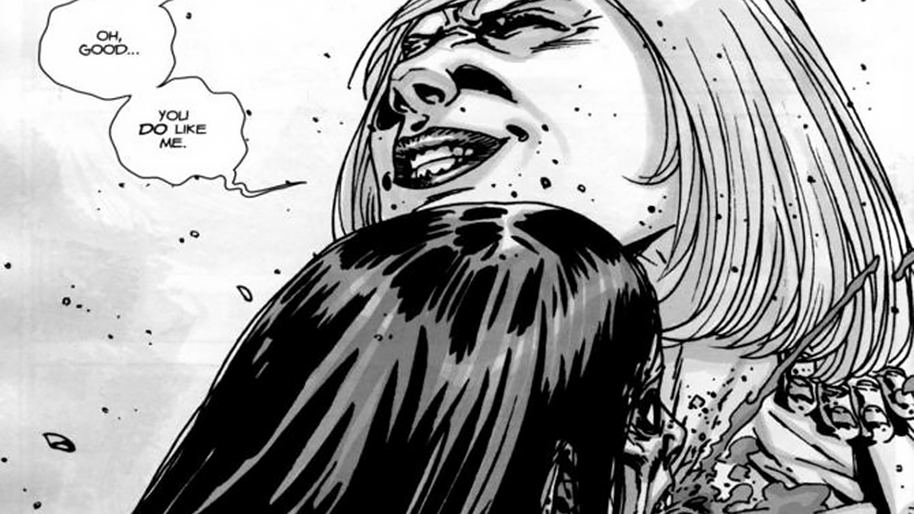 The Walking Dead comics have officially come to an end following creator Robert Kirkman’s release of Issue 193. The final installment concludes the stories of Rick and Carl Grimes, but AMC has made it clear that the series will not suffer or end even with the source material’s closure. During The Walking Dead Hall H panel at Comic-Con, Kirkman said that while the comics were “Rick Grimes’ story and Carl Grimes’ story,” the series “is about the world.” The longevity of the franchise is all but assured with the successful spinoff Fear the Walking Dead, the upcoming Rick Grimes movie making its way to the big screen, and more spinoffs currently in the works. As the TWD universe continues to thrive as the graphic novels say goodbye, we gathered six of the best moments of The Walking Dead comics that failed to make their way to the small screen. Spoiler warning!