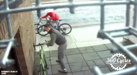 We combed the internet for moments when people were unsuspectingly knocked off their bikes by those who wanted some laughs. There may or may not also be GIFs of bike thieves being served up ice-cold plates of justice because, let’s be honest, we can laugh at them, too (if not more).