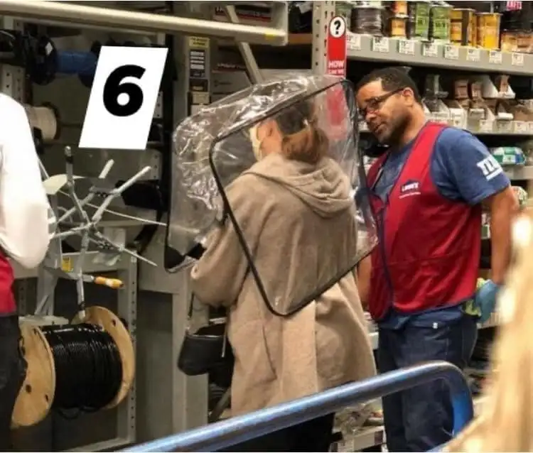 Cases in point are the following photos that showcase a handful of inventive (if not-well-thought-out) DIY masks that Americans are proudly wearing as they do their shopping. Now, we’re not scientists, nor do we claim to be (only our president thinks he knows more about science than those who have spent their lives studying science), but we’re not sure that these masks actually protect anybody from anything. Still, these people mean well, so we’ll give them the benefit of the doubt.