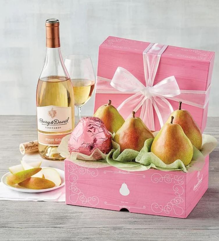 Your mom so fancy! Or she will be once she receives this pink gift box of foil-wrapped Royal Verano pears with a bottle of Pinot Gris from Harry and David. Bottom’s up!