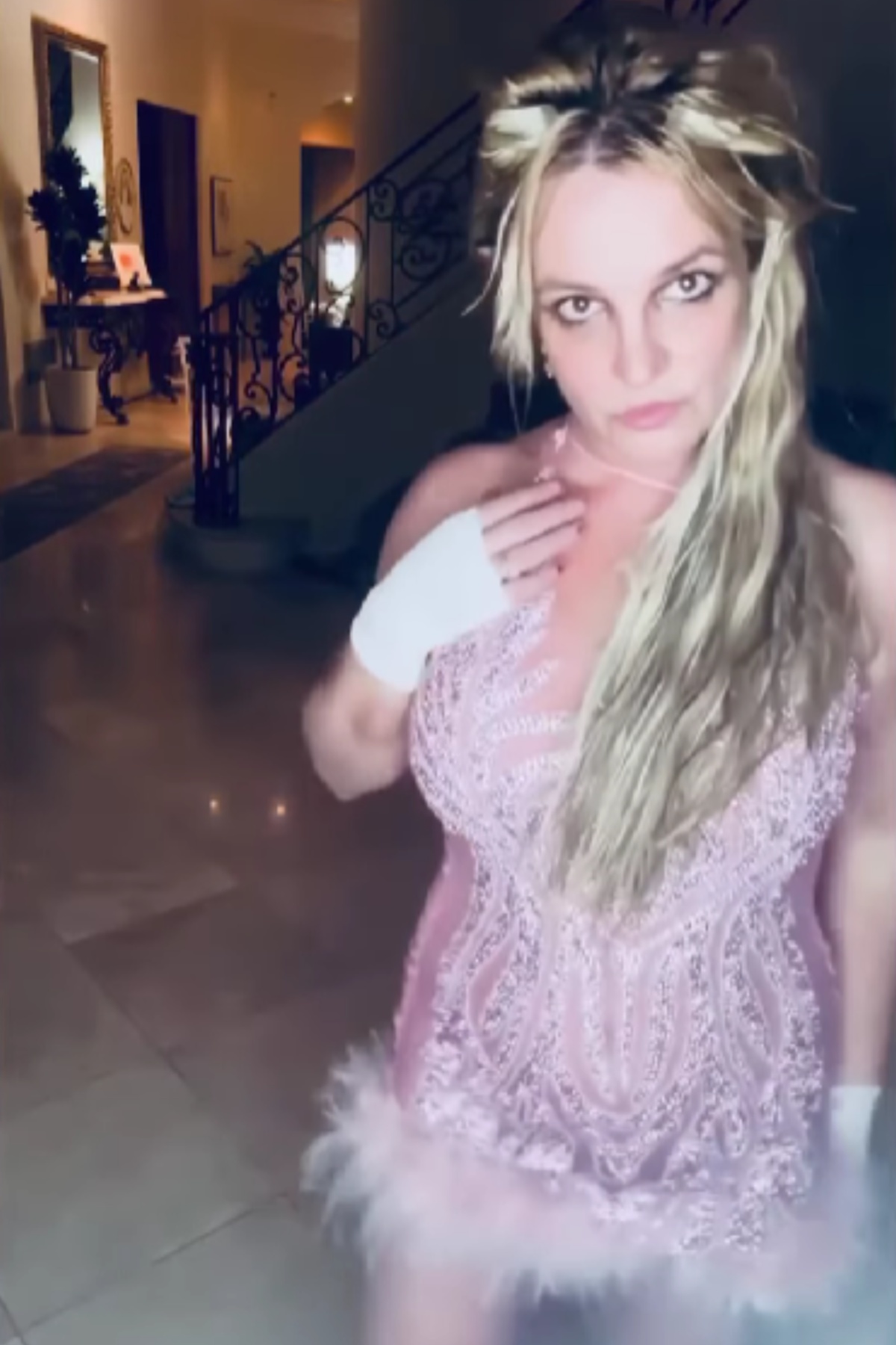 The hemline is trimmed with soft pink feathers, giving the mini-dress a flirty look. Britney completes the look with her signature long blonde waves and a pair of white wrist gloves that scream classic Britney glam. For some reason, the pop icon has turned off her comments.