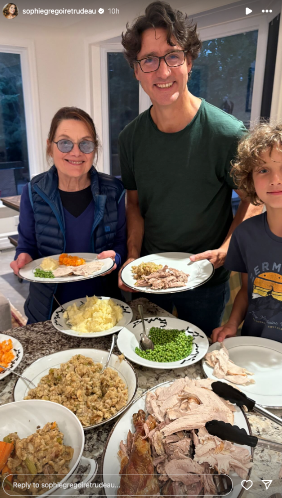 Sophie Gregoire Trudeau’s Instagram Stories offered a glimpse into the family’s Thanksgiving celebrations, highlighting a festive spread of traditional dishes including roasted turkey, mashed potatoes, peas, and stuffing.