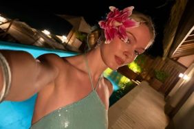 To complete the tropical look, Larsson tucked a large red hibiscus behind her ear. The flower perfectly complemented the shade of her hot pink bikini. Moreover, it beautifully matched her bikini’s floral appliqué. The pop star rounded out the look with a cute pink bag with knit-like detailing, letting the bold colors do the talking.