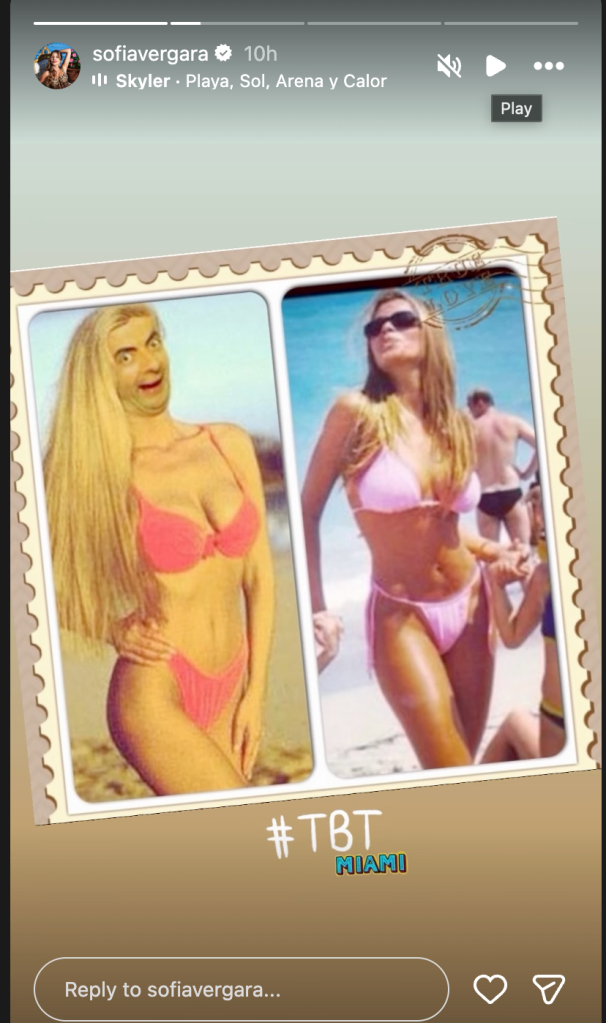 Sofia Vergara has wowed fans with a throwback picture of her rocking a pink bikini at a Miami beach. The Modern Family alum recently added the photo on her Instagram story, with another hilarious photo stitched with it featuring Mr. Bean’s face.